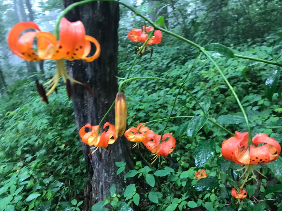 The 5-mile route is considered moderate. The first few miles pass through dense hardwoods and tunnels of rhododendron, with moss and ferns lining the path. The terrain rolls over ridgelines, dips into hollows, and offers occasional glimpses of distant mountains. Expect some rooty and rocky patches, along with small stream crossings. Near the end, the trail softens, winding gently through laurel thickets as you approach the lodge.